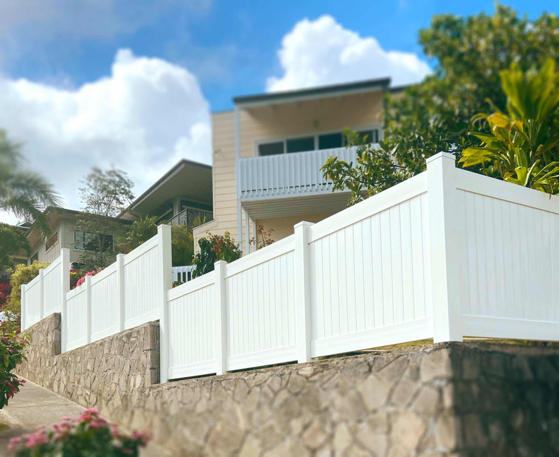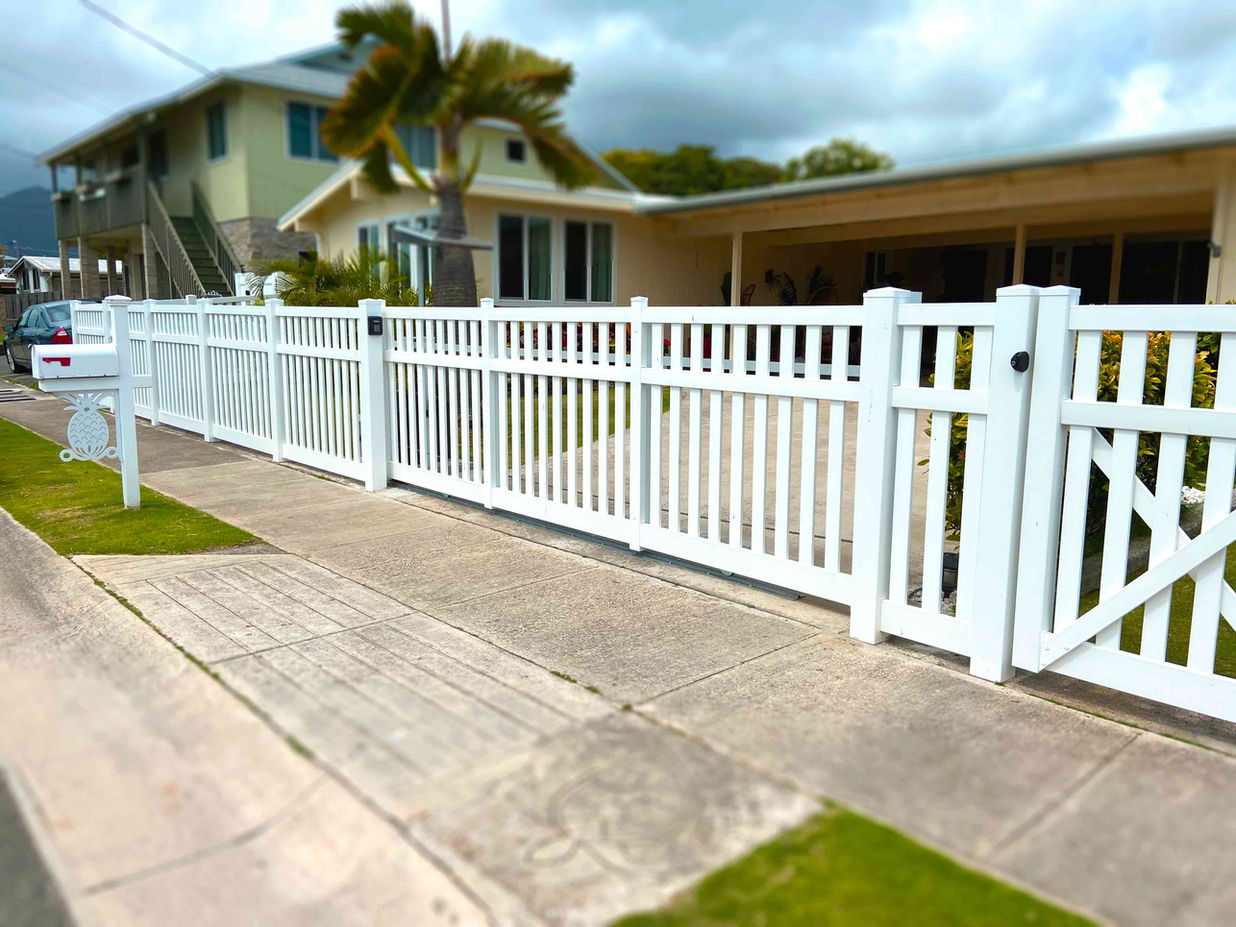 This style tends to be the most popular with clients looking for a fence that will endure the exterior elements of Hawaii and still maintain its original look and beauty throughout the lifetime of the fence. Enjoy a variety of fence options from the privacy style to an open picket that will complement any home. The manufacturer provides a 30-year limited product warranty that includes all vinyl material.