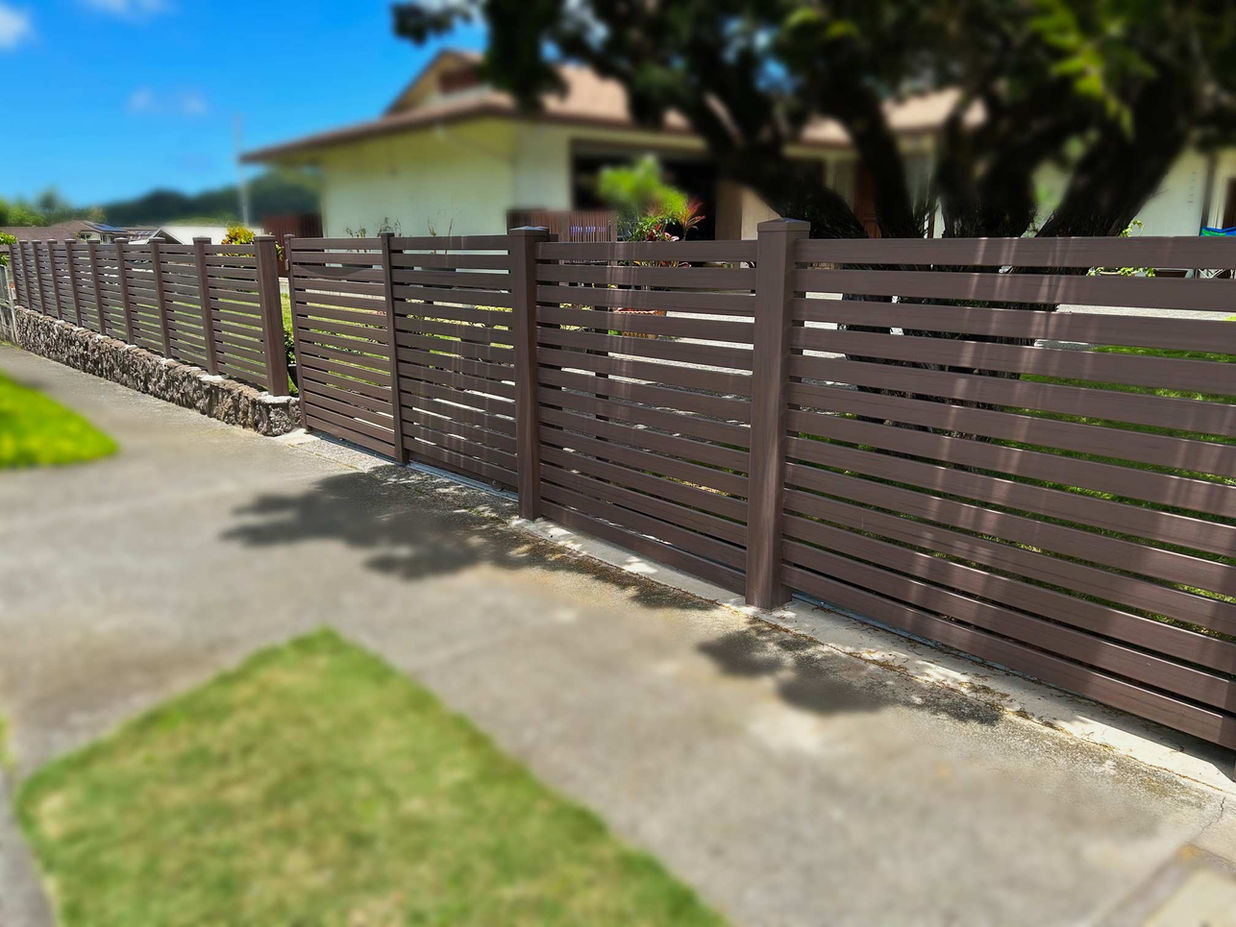 This style is often overlooked as a viable option but it provides a fence that has high visual appeal and being aluminum, that is powder coated to resist the elements of Hawaii’s natural elements. Most manufacturers will provide a lifetime warranty to the customer and the fence is maintenance-free. The cost for materials is traditionally higher but you will save in the long run as it’s a one-time investment.